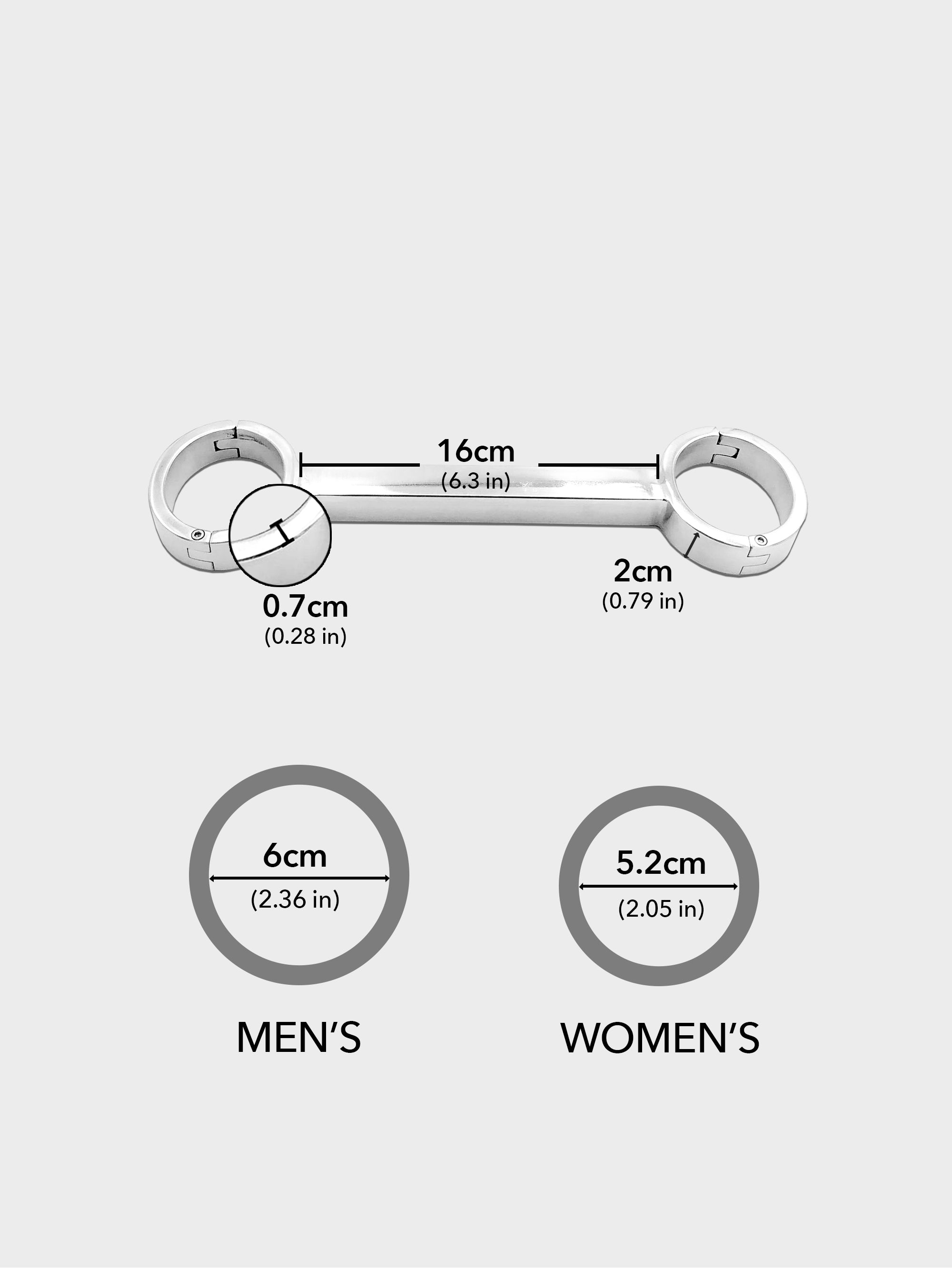 For Men: Inner diameter 6 cm (2.36 in), suitable for wrist circumference ≤ 18 cm (7 in)